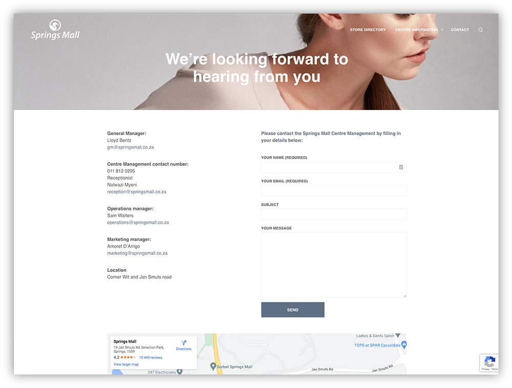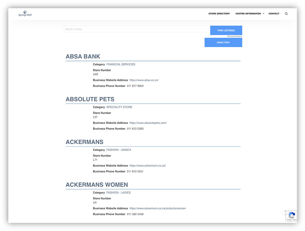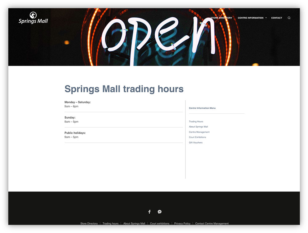 Squiggle designed and programmed the Springs Mall website, and also maintains the website on a monthly basis, ensuring that the site is updated with new shops and news added continuously. |